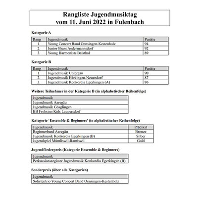 2022 Jugendmusiktag Fulenbach - 1. Platz inkl. Solistenpreis